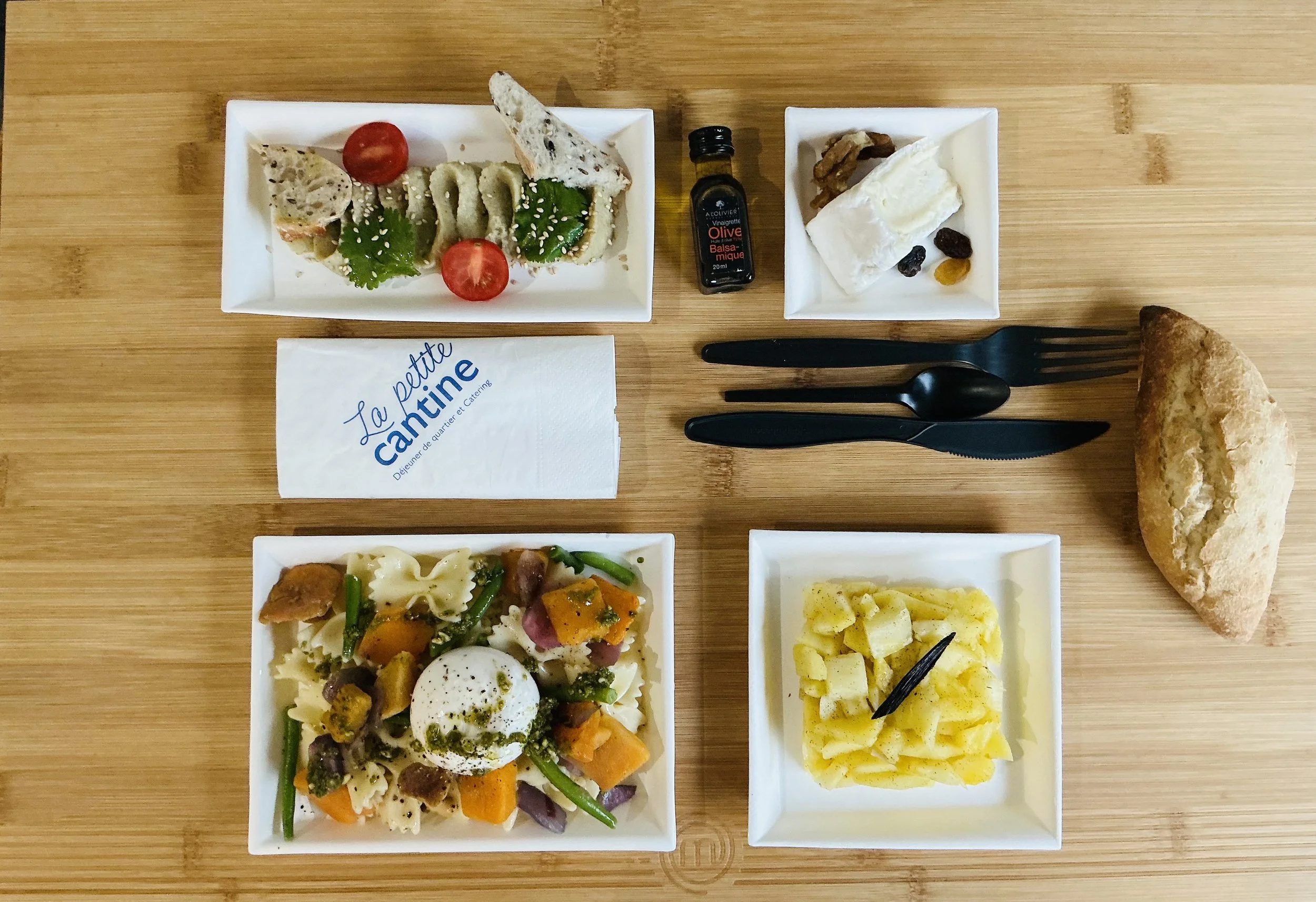 Coffrets recyclables et plats biodégradables (descriptif de la démarche écologique disponible à la demande)